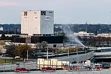 After the archives were moved out to the current facility in Morrow, the old downtown building, sometimes called the "White Ice Cube,"[7] was occasionally used as a movie filming location, such as for Ant-Man in 2014.[8] On March 5, 2017 the former downtown archive location was imploded so the site could be cleared in preparation for a new judicial complex.[7]