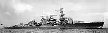 In early June 1941, she escorted the heavy cruiser Lützow (formerly Deutschland) to Norway. After she returned to the Baltic, she and the cruiser Emden provided artillery support to advancing German ground forces during Operation Barbarossa, the invasion of the Soviet Union.[14] In September, she supported the invasion of the Baltic islands in the West Estonian archipelago. While bombarding Soviet positions on Moon Island, Leipzig was attacked unsuccessfully by the Soviet submarine Shch-317. In late September, the ship joined the German Baltic Fleet, centered on the battleship Tirpitz; the fleet was tasked with blocking a possible Soviet attempt to break out of the Baltic.[15] Leipzig returned to Kiel in October, and conducted maneuvers with the heavy cruiser Admiral Scheer. Leipzig became the flagship of the training fleet in 1942; she spent the year performing training duties.[14]