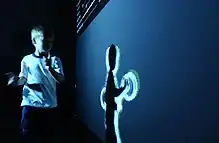 Public Installations, such as interactive public displays, allow access to information and displays interactive media in public settings such as museums, galleries, and theaters.[45] While touch screens are a frequent form of input for public displays, gesture interfaces provide additional benefits such as improved hygiene, interaction from a distance, and improved discoverability, and may favor performative interaction.[42] An important consideration for gestural interaction with public displays is the high probability or expectation of a spectator audience.[45]