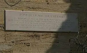 Gignac Bridge (French: Pont de Gignac) carries the N109 road over the river Hérault, 1 km west of the town of Gignac in the Hérault département of France. It is described by a plaque on the side as "Judged the most beautiful bridge of the 18th century", a view shared by the Michelin Green Guide which describes it as "considered to be the finest 18C bridge in France because of its daring design and the beauty of its architectural lines."[1]