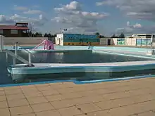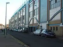 The main source of employment was at Chatham Dockyard, two-thirds of which lay within the boundaries of Gillingham. When it ceased to be a naval base in 1984, there was significant unemployment. A World Heritage Site application has been made for the Dockyard and its defences.[23] Since the 1980s, Gillingham has rebuilt its economic base and the Gillingham Business Park was set up 3 miles (4.8 km) from the town centre, to attract investments and diversify economic activity.[24] The business park and ice rink were an early commission for Grimshaw Architects.[25]