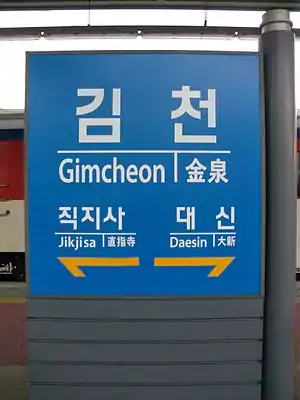 | Hangul | 김천역 |