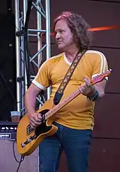 Gin Blossoms has been described as an alternative rock,[28][29][30] jangle pop,[31][9] power pop,[32][33] and post-grunge band.[34] According to Rolling Stone, the band excels at "marrying world-weary lyrics with ebullient melodies."[8] In 2017, the Salina Journal described Gin Blossoms as a "Tempe, Ariz.-based indie band [acclaimed] by critics and fans alike for its chiming guitars, introspective lyrics and catchy pop-rock melodies," adding that "Gin Blossoms has maintained its longevity by being mostly a road band."[31] The group is known for the "Mill Avenue sound", or "southwestern sound", similar to other bands from Arizona such as The Sidewinders, The Refreshments, The Meat Puppets, and Dead Hot Workshop.[35]