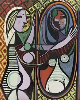 Girl before a Mirror (French: Jeune fille devant un miroir) is an oil on canvas painting by Pablo Picasso, which he created in 1932. The painting is a portrait of Picasso's mistress and muse, Marie-Thérèse Walter, who is depicted standing in front of a mirror looking at her reflection. It is housed in the collection of the Museum of Modern Art in New York City.