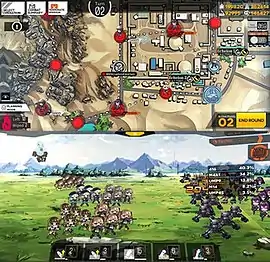 Missions consist of a turn-based strategic battlefield where the player directs echelons across a map consisting of linked nodes with the goal of fulfilling pre-determined mission requirements, such as capturing an enemy command node or rescuing hostage units. Players are able to deploy and move echelons during their turn by expending action points, which depend on the number of heliports controlled and the number of echelons deployed. The enemy units move during enemy turns based on preset instructions. If a player's echelon meets an enemy unit on the same node, a combat sequence is initiated. Combat is largely automated, but players can activate offensive and defensive skills specific to each T-Doll in real-time as well as move individual T-Dolls across a formation consisting of a 3×3 square grid. The position of T-Dolls within the echelon's starting formation provide stat enhancements to other T-Dolls, and the individual stats and abilities of the T-Dolls altogether determine the outcome of the battle against the enemy team.[2][10] Some missions, known as night-time battles, will handicap the player with a limit to the number of turns possible as well as include a fog of war mechanic restricting visibility over the strategic map. A score based ranking map is unlocked at the end of every major in-game event, where players can compete for rewards based on their highest score relative to other players during the event.