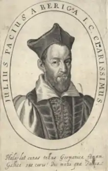 Giulio Pace de Beriga, also known as Giulio Pacio, or by his Latin name Julius Pacius of Beriga (9 April 1550 – 1635) was a well-known Italian Aristotelian scholar and jurist.