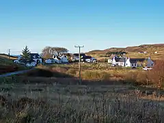 The crofts are strung out along a small strath of oolitic loam, which is the basis for the good quality of the farming land. The hills above are underlain by basalt, which also provides good grazing for cattle and sheep.[5]