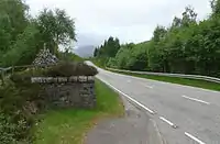 The glen is also steeped in Jacobite history. After the Battle of Culloden in 1746, the pretender to the Scottish throne, Bonnie Prince Charlie escaped to safety through Glenmoriston. Here the Prince took refuge in a cave up in the hills where the River Doe flows down into the glen. He was famously protected by the Seven Men of Glenmoriston, in spite of a £30,000 reward (around £4.2 million or US$6 million in 2016[6]). By the side of the road is Roderick Mackenzie's cairn, a tribute to a loyal supporter of the Stuart Prince who pretended to be Charlie and allowed himself to be captured and killed by the soldiers pursuing the young pretender – giving the real man time to escape to safety. Glenmoriston is commonly misspelled as Glenmorriston especially in history books.