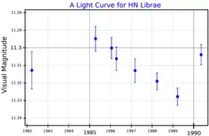 Gliese 555 (HN Librae) is a red dwarf star of spectral type M4.0V, located in the constellation Libra at a distance of 20.4 light-years (6.3 parsecs) from Earth.[14]