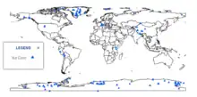 The instrumental temperature record is a record of temperatures within Earth's climate based on direct, instrument-based measurements of air temperature and ocean temperature. Instrumental temperature records are distinguished from indirect reconstructions using climate proxy data such as from tree rings and ocean sediments.[24] Instrument-based data are collected from thousands of meteorological stations, buoys and ships around the globe. Whilst many heavily-populated areas have a high density of measurements, observations are more widely spread in sparsely populated areas such as polar regions and deserts, as well as over many parts of Africa and South America.[25] Measurements were historically made using mercury or alcohol thermometers which were read manually, but are increasingly made using electronic sensors which transmit data automatically. The longest-running temperature record is the Central England temperature data series, which starts in 1659. The longest-running quasi-global records start in 1850.[26]