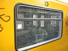 - Graffiti done inside trains, trams, or buses. In 1970s New York, there was as much graffiti inside the subway trains as outside, and the same is true of some cities today (like Rome, Italy and Melbourne, Australia). While still very common, insides are often perceived as being less artistic.