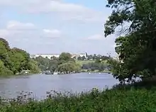 In 1872 the island, then called Petersham Ait, was bought by a Richmond-based waterman named Joseph Glover for £70 (equivalent to £7,000 in 2021);[1] advertising it for resale in 1895. Sir John Whittaker Ellis, Mayor of Richmond,[1] had a house along the aristocratic row on the place with the highest, definitive Thames Arcadia view.[3] This is on the steep terrace of Richmond Hill above public pleasure gardens and he declined to buy the island at £5,000 (equivalent to £614,000 in 2021) so suggested that the Richmond Corporation should be approached.[1] The view itself had been painted by John Wootton in about 1740 as A View From Richmond Hill. An English Arcadia.