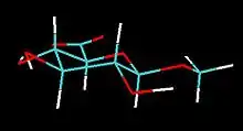 The nonplanar pyranose rings can assume either chair (in 2 variants) or boat conformation. The preferred conformation depends on spatial interference or other interactions of the substituents. The pyranose form of D-glucose and its derivative D-glucuronic acid prefer the chair 4C1.