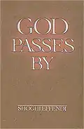 God Passes By, written by Shoghi Effendi, head of the Baháʼí Faith in the first half of the 20th century, is a book which provides a historical summary of the first century of the Baháʼí Faith, from 1844 to 1944.[1] While historical episodes are recounted in some detail, "God Passes By" is particularly notable for the significance Shoghi Effendi assigns to events in the history of the Baháʼí Faith, and the interpretation he gives to various episodes.