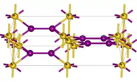 Gold monoiodide is the inorganic compound of gold and iodine with the formula AuI. It can be synthesized by dissolving gold powder in an aqueous solution of iodine and potassium iodide.[3] With Lewis bases, AuI reacts to give numerous complexes.[4]