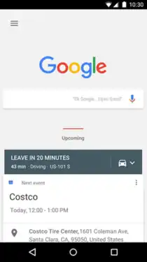 Google Now was a feature of Google Search of the Google app for Android and iOS. Google Now proactively delivered information to users to predict (based on search habits and other factors) information they might need in the form of informational cards. Google Now branding is no longer used, but the functionality continues in the Google app and its discover tab.[3]