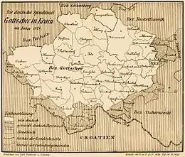 As part of the Habsburg Kingdom of Illyria, Gottschee was administratively part of the Novo Mesto District (German: Neustädtler Kreis).[28] The Kingdom of Illyria was succeeded by the reconstituted Duchy of Carniola in 1849.