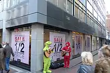 The Dublin branch of Woolworth's opened on Nos. 65–68 in 1948.[18] The first Irish McDonald's restaurant opened on the street in 1977. This was followed by the opening of a number of other UK high street businesses in the 1980s including HMV, Next, River Island, Miss Selfridge,[11] and Marks & Spencer.[19] In 1987, a major fire broke out on Grafton Street in an employment agency above two shops. The fire quickly spread through the property, causing significant damage and closing the street. Five people were hospitalised for shock and smoke inhalation.[20]