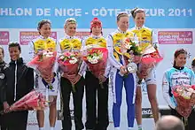 - Poissy Triathlon: Jessica Harrison, Carole Péon, Erin Densham, Andrea Hewitt, Jodie Stimpson, Kerry Lang, Kate McIlroy, Kathrin Müller, Bérengère Abraham, Rachel Klamer.