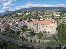 Grandson (French: [ɡʀɑ̃sɔ̃]) is a municipality in the district of Jura-Nord Vaudois in the canton of Vaud in Switzerland. It is situated on the south-west tip of Lake Neuchâtel, about 25 km (15 miles) north of Lausanne. It was part of the Kingdom of Upper Burgundy until the death of Rudolph III of Burgundy (993-1032), also King of Lower Burgundy, the last in the male line, when it was united with the Holy Roman Empire. On 2 March 1476, during the Burgundian Wars, Charles the Bold was defeated here in the Battle of Grandson.