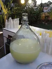 Grapefruit juice is the juice from grapefruits. It is rich in vitamin C and ranges from sweet-tart to very sour. Variations include white grapefruit, pink grapefruit and ruby red grapefruit juice.[1][2]