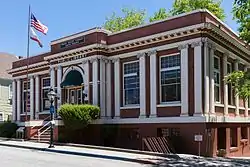 San Francisco architect William Sebastian Mooser[6] was selected over William Weeks to design the new library. The builders were Welch Bros. and Hannemann from Oakland who also built the Gridley Carnegie Library.[4][7]