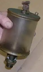 - A glass cup rather than a metal one, which allowed an operator or oiler to see at a glance how low the oil level was