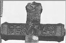 - OCRUXAVES PESUNICA: When decoded it reads, O Crux Ave Spes Unica, which translates to 'Hail O Cross, the Only Hope'. However, when examining the inscription, Fulcanelli noticed something unique about the inscription, and that was the misplaced 'S'. Although he called attention to the "incorrect grammar", he believed that there was no mistake. But instead that the creator of the Cross wanted the interpretation to be 'Measure of the Twelfth Part'. Fulcanelli believed that this phrase was a clear reference to the cosmic cycles and alignments. He believed that the 'S', which takes on a curving shape of a snake, corresponds to the Greek khi (X) and takes over its esoteric meaning.