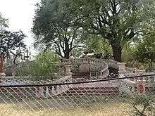 ![]() Refugees walk across a bridge with the Afzal Darwaza in the background, during the Great Musi Flood of 1908 | |