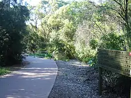 After its official start in Macquarie Place, the walk continues through the suburb of Hunters Hill, where there are many heritage homes, then arrives at the Lane Cove River.[5] It follows the river through the Lane Cove National Park to Thornleigh, then follows Berowra Creek. Further north, the track crosses over to the Ku-ring-gai Chase National Park[6] before proceeding to Brooklyn, on the Hawkesbury River. The river can be crossed either by train or boat, after which the track proceeds north through Brisbane Water National Park[7] and the Ourimbah Valley[8] before reaching the Watagan State Forest.[9] Further north, the track veers east in the vicinity of Brunkerville and follows the Myall Range for some distance before reaching Teralba, on the southern fringes of Newcastle. It then proceeds to its official finishing point in Newcastle.