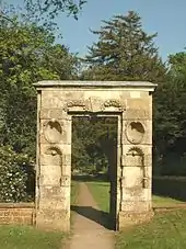 Viscount Cary lived in a large manor house that seems to have been built in or before the early 17th century and extended in the latter part. In 1736 the political manager Susanna Keck married Anthony Keck MP who had inherited the manor.[10] It was demolished in about 1800, but surviving adjacent structures from about 1700 include stables, a dovecote and a stone gate piers.