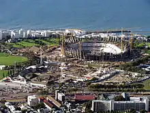 It was partly demolished in 2007 during construction of an adjacent new stadium, the Cape Town Stadium, built on part of an existing golf course for the 2010 FIFA World Cup.[8] The main stand of the rebuilt Green Point Athletics Stadium was constructed on the site of the old stadium's main stand.[9] The stadium was completed in early 2013, and can seat 7,000 people.