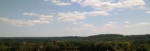 Green Spring Valley Historic District is a national historic district near Stevenson in Baltimore County, Maryland, United States. It is a suburban area of Baltimore that acquires significance from the collection of 18th, 19th, and early 20th century buildings. The park-like setting retains a late 19th-early 20th century atmosphere. At the turn of the 20th century, the Maryland Hunt Cup and the Grand National Maryland steeplechase races were run over various parts of the valley.[2] The Maryland Hunt Cup, which began as a competition between the Green Spring Valley Hunt and the Elkridge Hunt, traditionally started at Brooklandwood, the previous home of Charles Carrol of Carrollton (later St. Paul’s school) with the finish across Valley Road at Oakdene, at that time the home of Thomas Deford, which remains a private residence