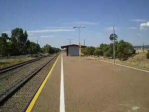 Greenfields railway station is located on the Gawler line.[1] Situated adjacent to Parafield Airport, in the northern Adelaide suburb of Parafield, it is 15.5 kilometres (9.6 mi) from Adelaide station.