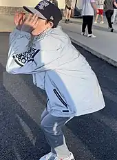 The Griddy is a dance move in which a person alternatingly taps their heels, either in place or while walking, while swinging their arms back and forth. Created by high school footballer Allen Davis in 2019, his dance went viral on TikTok in 2021. Minnesota Vikings wide receiver Justin Jefferson instructs “throw[ing] your B’s”.[1] This looks similar to forming "ok" symbols around their eyes.[2]