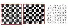 The encipherer begins with the board in the wrong position for chess. Each successive letter of the message is written in a single square. If the message is written vertically, it is taken off horizontally and vice versa.