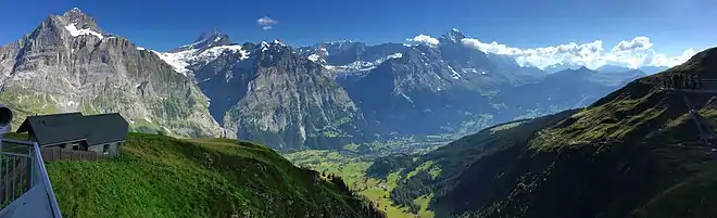 The highest peaks of the valley, from the Wellhorn and Wetterhorn to the Eiger and Mönch, are part of the Jungfrau-Aletsch protected area, a world heritage site.[10]