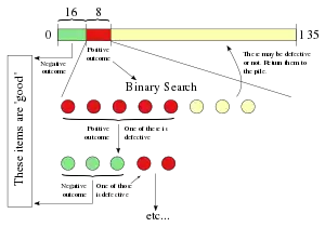 In general, finding optimal algorithms for adaptive combinatorial group testing is difficult, and although the computational complexity of group testing has not been determined, it is suspected to be hard in some complexity class.[3] However, an important breakthrough occurred in 1972, with the introduction of the generalised binary-splitting algorithm.[16] The generalised binary-splitting algorithm works by performing a binary search on groups that test positive, and is a simple algorithm that finds a single defective in no more than the information-lower-bound number of tests.