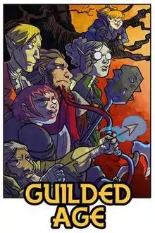 Guilded Age is a 2009 fantasy webcomic about five heroes who have come together to work for a common goal: three squares and a warm bed. Its narrative presents a conflict between warring coalitions based on centuries-old feuds, but the writers claim they intend to "try to focus on what's important." The webcomic is a collaboration of T Campbell, Erica Henderson, and Phil Kahn. T Campbell, the co-writer, has described Guilded Age as a "fantasy dramedy-adventure"[2] Henderson stepped down as the primary artist of the strip at the end of November 2010, with art duties being taken over by John Waltrip.
