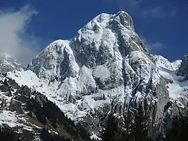 ![]() The Gummfluh from the entry to La Pierreuse nature reserve (north side) | |