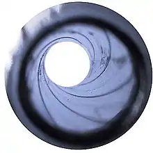 In virtually every Eon-produced Bond film, the sequence begins with a white dot blinking across the screen, from left to right. Upon reaching the right edge of the frame, the dot opens up to reveal a gun barrel's interior. From the point of view of an off-screen assassin, the camera follows James Bond as he walks from right to left against a neutral background.[4] Suddenly he becomes aware of being observed and stops at the centre of the screen before he quickly turns to the camera and shoots his gun towards it. A blood-red wash, representing the gunman bleeding, runs down the screen. The gun barrel dissolves to a white dot which moves from side-to-side across the screen and settles in the corner. With a few exceptions, the circle then either shrinks and disappears, fades from white to a circular cutout of the first scene, expanding to reveal the full view of the scene shortly thereafter, or simply fades to black from the final Bond firing pose.