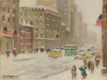 Guy Carleton Wiggins NA (February 23, 1883 – April 25, 1962) was an American impressionist painter. He was the president of the Connecticut Academy of Fine Arts, and a member of the Old Lyme Art Colony. He did many paintings of New York City's snowy streets, landmarks and towering skyscrapers during winter.