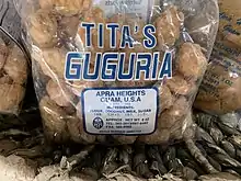 Guyuria are traditional Chamorro cookies. They are also known as Chamorro jawbreaker cookies due to their historically rock-hard texture. Guyuria was originally made with flour, coconut milk, and a sugar glaze. The dough is first made as one solid mass. Small pieces of dough are pinched off. Each piece is rolled out on a wooden guyuria board or on the back of a fork. Once enough cookies are formed, a batch is fried, cooled, and finally coated with a sugar glaze. The glaze is then allowed to dry on the cookies.