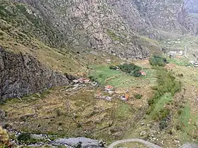 Gveleti (Georgian: გველეთი; Ingush: Гелате, romanized: Gelate), is a village (aul) in the Kazbegi Municipality of Georgia. It is located in the Darial Gorge, on the right bank of the Devdaraki (a left tributary of the Terek river), 1560 meters above sea level, 9 kilometers from Stepantsminda. Gelatē was founded by the Ingush taïp Gelatkhoy (Ingush: Гелатхой).