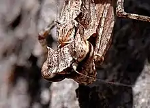 | Spiny bark mantis showing two spines just behind the eyes | |