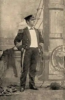 Sullivan, as had been arranged with Carte and Gilbert, gave notice to the partners of the Comedy Opera Company in early July 1879 that he, Gilbert and Carte would not be renewing the contract to produce Pinafore with them and that he would be withdrawing his music from the Comedy Opera Company on 31 July.[49][50][51] In return, the Comedy Opera Company gave notice that they intended to play Pinafore at another theatre and brought a legal action against Carte and company. They offered the London and touring casts of Pinafore more money to play in their production, and although some choristers accepted their offer, only one principal player, Aeneas Joseph Dymott, accepted.[52] They engaged the Imperial Theatre but had no scenery. On 31 July, they sent a group of thugs to seize the scenery and props during Act II of the evening performance at the Opera Comique.[53] Gilbert was away, and Sullivan was recovering from an operation for kidney stones.[54] Stagehands and cast members managed to ward off their backstage attackers and protect the scenery, although the stage manager, Richard Barker, and others, were injured. The cast went on with the show until someone shouted "Fire!" George Grossmith, playing Sir Joseph, went before the curtain to calm the panicked audience. The police arrived to restore order, and the show continued.[44][55][56] Gilbert sued to stop the Comedy Opera Company from staging their rival production of H.M.S. Pinafore.[57] The court permitted the production to go on at the Imperial, beginning on 1 August 1879, and it transferred to the Olympic Theatre in September. Pauline Rita was one of a series of Josephines.[58] The production received good notices and initially sold well but was withdrawn in October after 91 performances.[52] The matter was eventually settled in court, where a judge ruled in Carte's favour about two years later.[59]