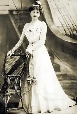 In Pinafore, Gilbert, Sullivan and Carte used several of the principal cast members whom they had assembled for The Sorcerer. As Gilbert had suggested to Sullivan in December 1877, "Mrs. Cripps [Little Buttercup] will be a capital part for Everard ... Barrington will be a capital captain, and Grossmith a first-rate First Lord."[13] However, Mrs Howard Paul,[n 1] who had played Lady Sangazure in The Sorcerer, was declining vocally. She was under contract to play the role of Cousin Hebe in Pinafore. Gilbert made an effort to write an amusing part for her despite Sullivan's reluctance to use her, but by mid-May 1878, both Gilbert and Sullivan wanted her out of the cast; unhappy with the role, she left. With only a week to go before opening night, Carte hired a concert singer, Jessie Bond, to play Cousin Hebe.[28][29] Since Bond had little experience as an actress, Gilbert and Sullivan cut the dialogue out of the role, except for a few lines in the last scene, which they turned into recitative.[n 2] Other new cast members were Emma Howson and George Power in the romantic roles, who were improvements on the romantic soprano and tenor in The Sorcerer.[12]