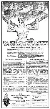 In 1932, following negotiations between the Hospital Saturday Fund (HSF) and a newly created Hospital Commission of New South Wales, a new fund was created to better serve the community. The new fund – called the Metropolitan Hospitals Contribution Fund (MHCF) – was launched on Thursday 16 June 1932, with the Lord Mayor (Ald. S. Walder) presiding.[7][8]