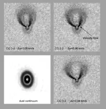 This star has a substantial dust disk having a central cavity with a 40−46 AU radius[3] The disk has a carbon monoxide gas velocity kink and intensity gap at 130 AUs, which is suspected to be caused by a superjovian planet.[12] In 2019, HCO+ ion and Hydrogen cyanide emission was detected from the disk, suggesting a large amount of gas is orbiting beyond 200 AU radius.[13]