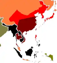 HLA-B46 (B46) is an HLA-B serotype. The serotype identifies the gene products of HLA-B*4601 allele.[1] B*4601 resulted from a rare, interlocus, gene conversion between B62, probably B*1501, and a HLA-C allele.[2] B*4601 is the most common HLA-B allele that does not have an origin within Africa, and estimated 400 million people in Eastern Asia carry a B46 allele. When found B*4601 segregates with only 2 HLA-Cw alleles, A limited number of HLA-A and HLA-DRB1 alleles suggesting that the allele recently expanded from a limited sized group within SE Asia. Extremely low frequencies outside of Eastern Asia are indicators of a recent expansion of B46 from a recently small population. The frequency distribution suggests the ancestral B46 population was in SE China, or, potentially Burma (Myanmar or Laos, untested). B46 in Asia correlates with wet-rice farming. The exceptions are notable, it has been found in the Nivkhi on north-eastern Sakalin Island, the Ainu, and the Nivkhi-related (genetically) Tlinglet population of Alaska at trace levels.